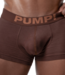 Tailleband: 40 mm espressobruin met het PUMP! logo aan de voorzijde en linker achterzijde.