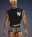 De vervormde zwart-wit ruitjesprint creëert een visueel dynamisch effect dat direct in het oog springt. De 45 mm zwarte tailleband met PUMP!-logo in opvallende kleurverloopstrepen zorgt voor een sportieve uitstraling én stevige pasvorm.